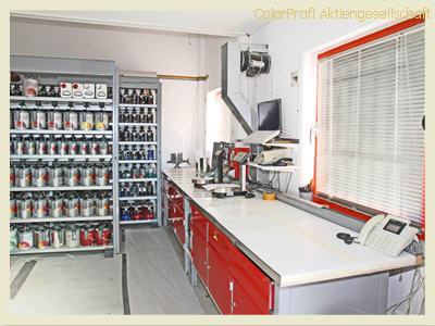 Nahezu einmalig im Marktsegment für Reparaturlacke ist unsere hauseigene Coloristik, welche uns jederzeit in die Lage versetzt, binnen kürzester Zeit auf Ihre Farbtonanfragen und –probleme praxisgerechte Lösungen anzubieten. So können wir mit dazu beitragen, dass Sie Ihren Kundenauftrag termingemäß erfüllen können.